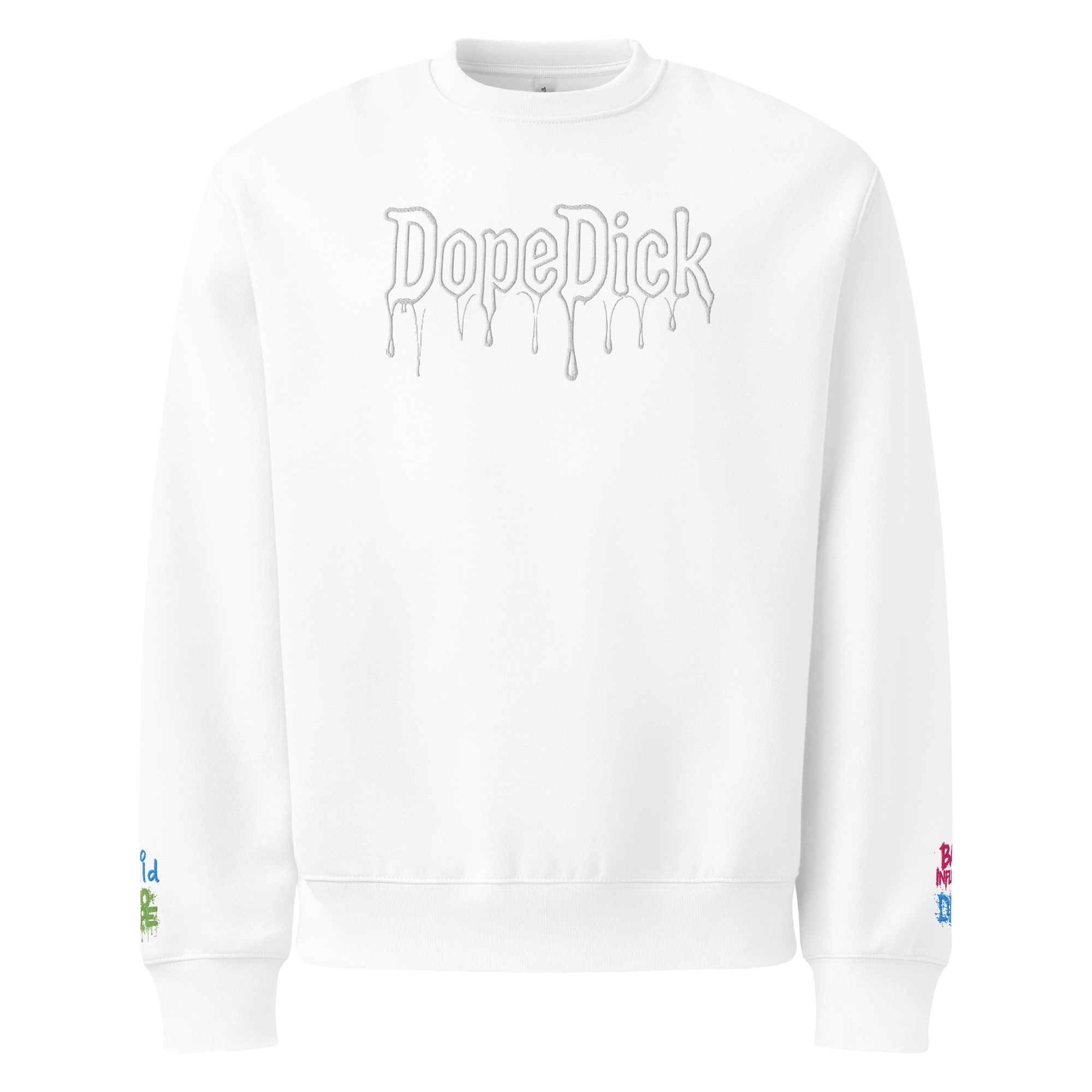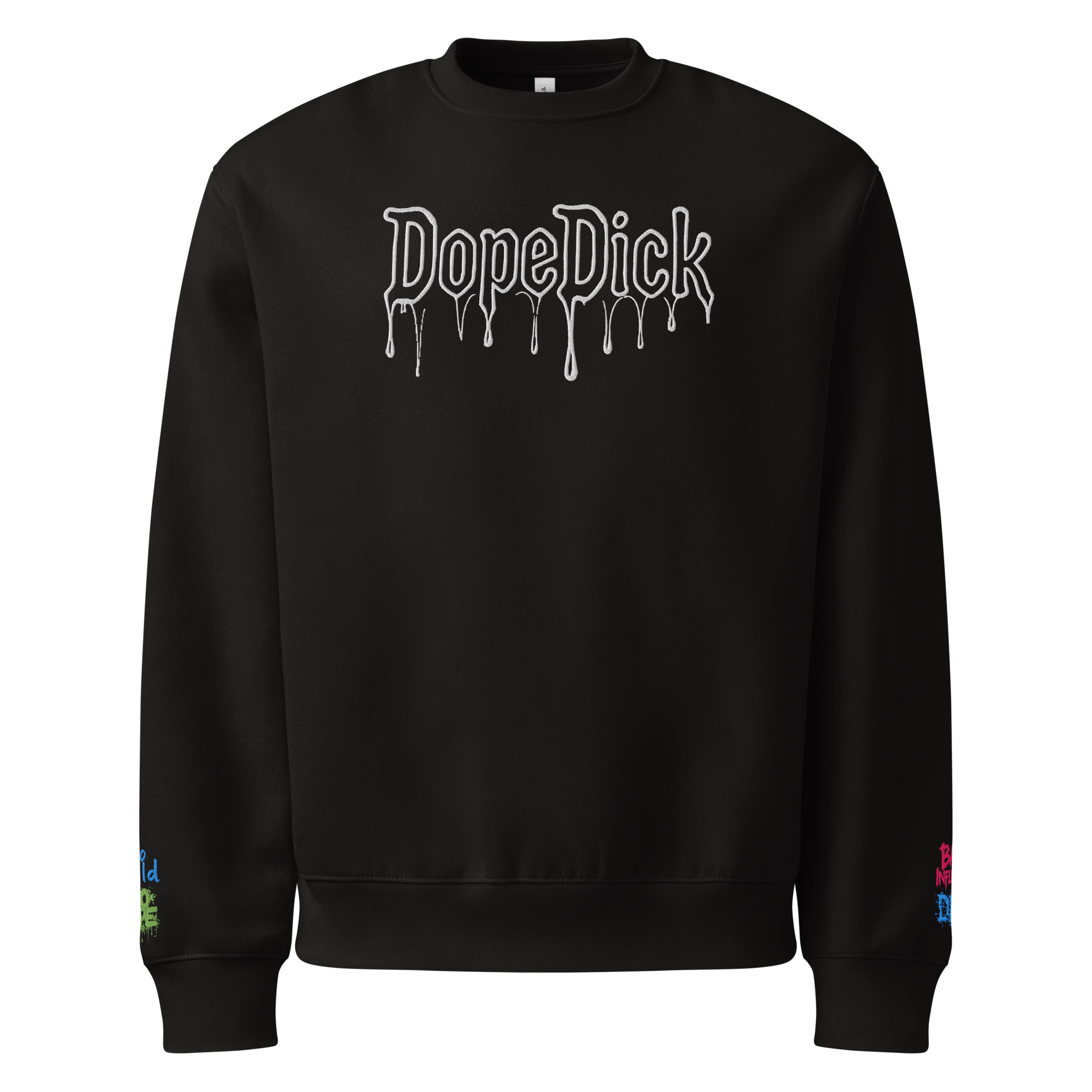 DopeDick › DopeDick secret sauce Image 1 of 8 Image 2 of 8 Image 3 of 8 Image 4 of 8 Image 5 of 8 Image 6 of 8 Image 7 of 8 Image 8 of 8 DopeDick secret sauce $118.00 Go big on comfort with this oversized fleece sweatshirt. Soft .stitched. Secret sauce. . · 60% Airlume combed and ring-spun cotton, 40% polyester fleece · Fabric weight: 10 oz./yd.² (339 g/m²) · Slightly dropped sleeves · Relaxed, oversized unisex fit Color: Select Color Black White Size: Select Size S M L XL 2XL 3XL Add To Cart Added! Go big on comfort with this oversized fleece sweatshirt. Soft .stitched. Secret sauce. . · 60% Airlume combed and ring-spun cotton, 40% polyester fleece · Fabric weight: 10 oz./yd.² (339 g/m²) · Slightly dropped sleeves · Relaxed, oversized unisex fit